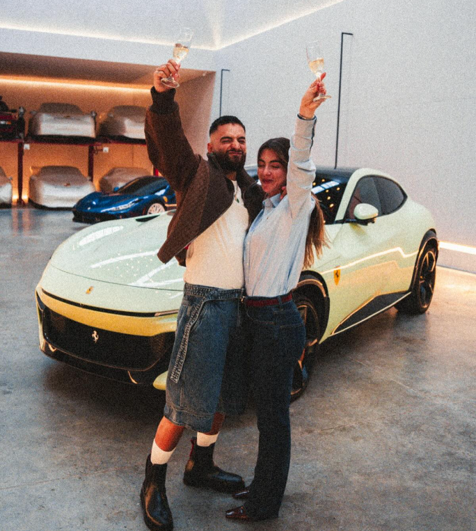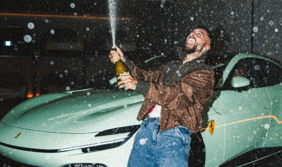 El estreno del automóvil fue acompañado por un momento de puro glamour, donde el artista lo presentó en Instagram rociando champaña sobre el coche, alzando copas con su pareja y mostrándolo con orgullo ante sus seguidores.