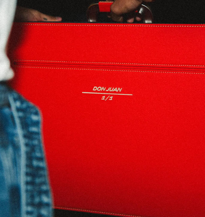 Un Ferrari Purosangue con un sorprendente color verde menta, una pieza única diseñada especialmente para él bajo el programa «Tailor Made» de Ferrari. Este vehículo exclusivo lleva en la maleta escrito “Don Juan 1/1”